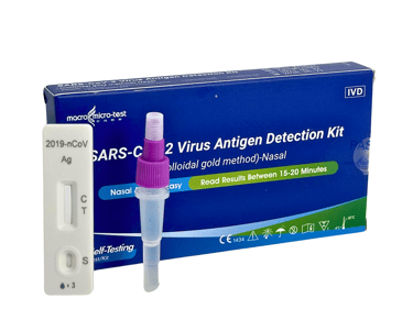 This Detection kit is for in vitro qualitative detection of SARS-CoV-2 antigen in nasal swab samples. This test is intended for non-prescription home use self-testing with self-collected anterior nasal (nares) swab samples from individuals aged 15 years or older who are suspected of COVID-19 or adult collected nasal swab samples from individuals under 15 years old who are suspected of COVID-19.